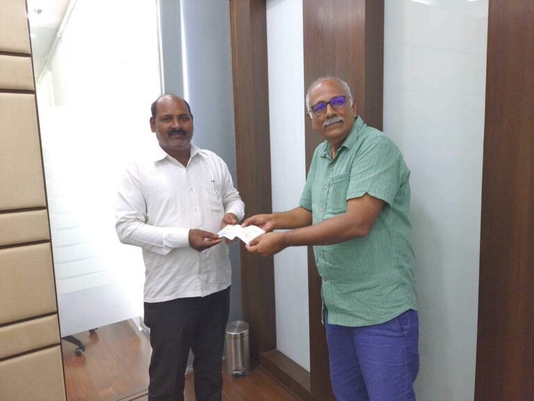 Rishi Muralimohan, CEO of Hidush Foundation, handed over the cheque for first year medical education…