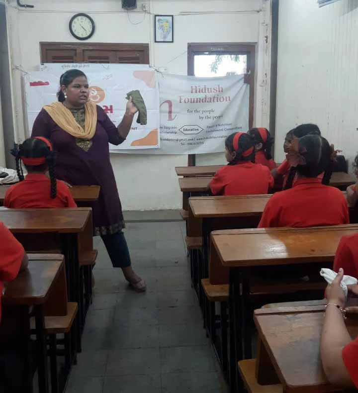 Hidush Foundation, in collaboration with the Aditya Birla Education Trust, organized a meaningful initiative focusing on health and hygiene awareness. The program included the distribution of sanitary pads along with interactive lectures for both girls and boys, helping them understand the importance of menstrual hygiene, self-care, and overall well-being.